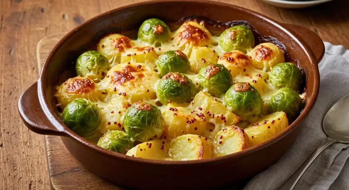 Le chou de Bruxelles a mauvaise réputation, et pourtant… quand il est bien cuit, qu’il s’unit à la rondeur de la pomme de terre et à la crème relevée de moutarde, il devient tout simplement irrésistible. Ce gratin, c’est l’exemple parfait du plat simple et futé qui change tout.